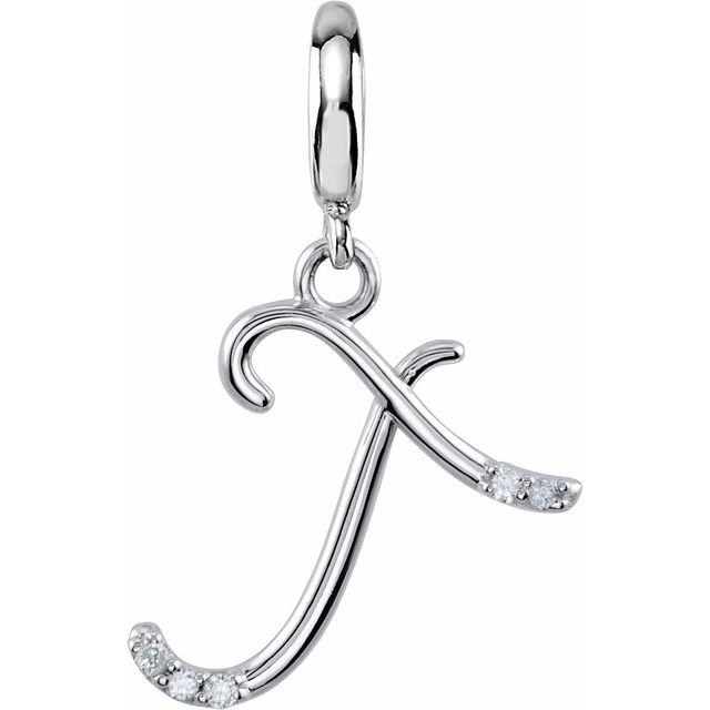 Sterling Silver Script Initial J .03 CTW Diamond Charm