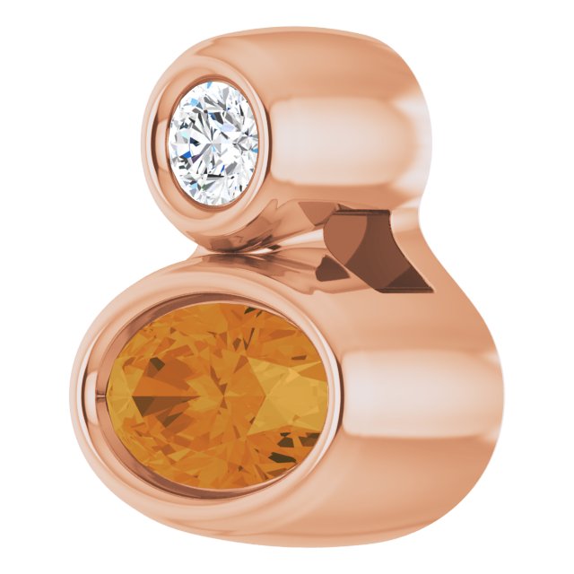 / Pendant / Set / 14K Rose / Oval / Natural Citrine / 5 X 3Mm :: 0.03 Ct / Natural Diamond / I1, G-H / Polished / Natural Citrine And .03 Ct Natural Diamond Pendant