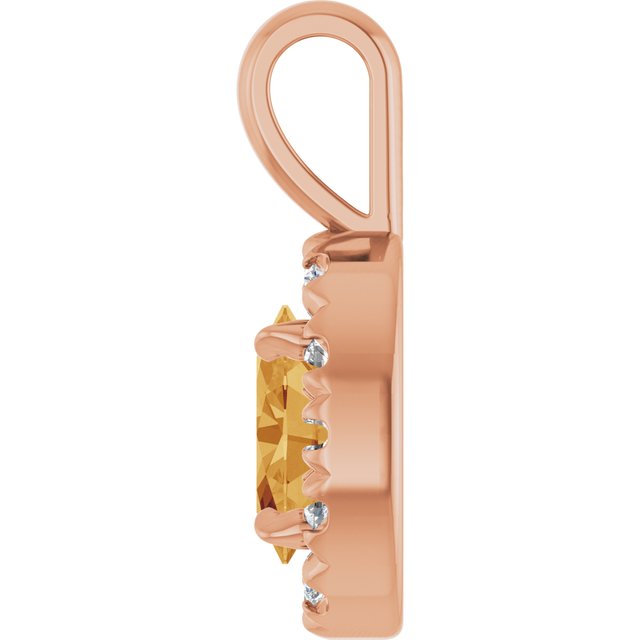 14K Rose 6x4 mm Natural Citrine & 1/10 CTW Natural Diamond Halo-Style Pendant