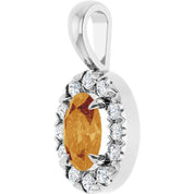 / Pendant / Set / 14K White / Oval / Natural Citrine / 6 X 4Mm :: 1/10 Ctw / Natural Diamond / I1, G-H / Polished / Natural Citrine And 1/10 Ctw Natural Diamond French-Set Halo-Style Pendant