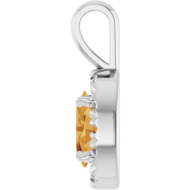 14K White 6x4 mm Natural Citrine & 1/10 CTW Natural Diamond Halo-Style Pendant