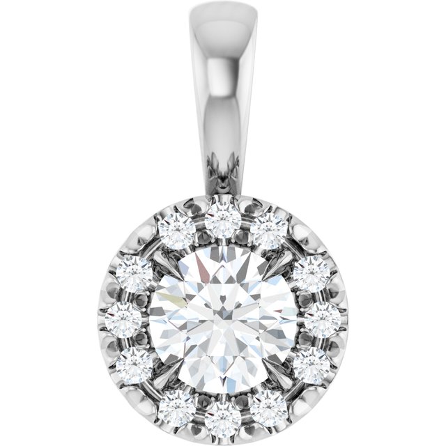 Description: Natural White Sapphire And .05 Ctw Natural Diamond French-Set Halo-Style Pendant