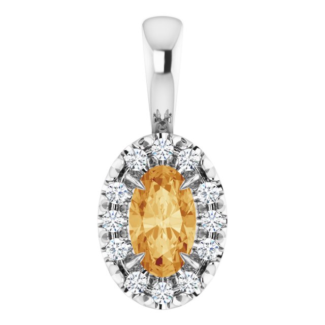 / Pendant / Set / Platinum / Oval / Natural Citrine / 5 X 3Mm :: 0.05 Ctw / Natural Diamond / Si2-Si3, G-H / Polished / Natural Citrine And .05 Ctw Natural Diamond French-Set Halo-Style Pendant