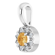 / Pendant / Set / Sterling Silver / Round / Natural Citrine / 3Mm :: 0.03 Ctw / Natural Diamond / I1, G-H / Polished / Natural Citrine And .03 Ctw Natural Diamond French-Set Halo-Style Pendant