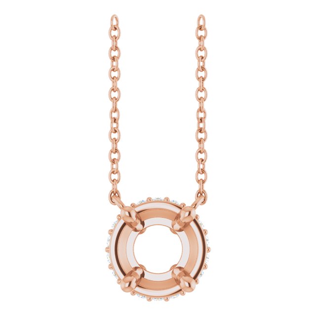 / Necklace / Semi-Set / 14K Rose / Round / 6.5Mm :: 0.06 Ctw / Natural Diamond / I1, G-H / 18 In / Polished / .06 Ctw Natural Diamond Semi-Set Hidden Halo Necklace