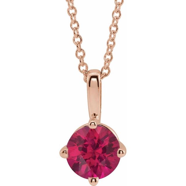 14K Rose 6 mm Lab-Grown Ruby Solitaire 16-18" Necklace