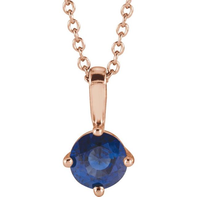 14K Rose 6 mm Natural Blue Sapphire Solitaire 16-18" Necklace
