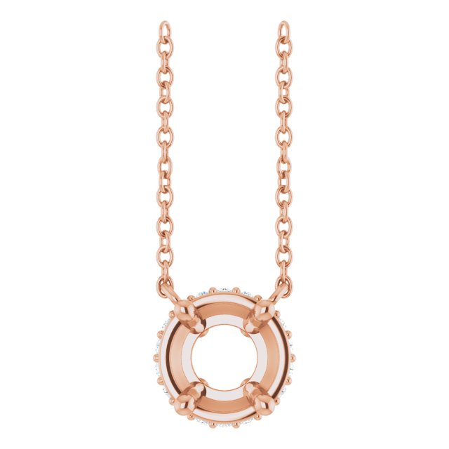 / Necklace / Semi-Set / 14K Rose / Round / 6Mm :: 0.06 Ctw / Natural Diamond / I1, G-H / 18 In / Polished / .06 Ctw Natural Diamond Semi-Set Hidden Halo Necklace