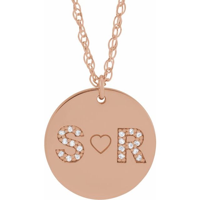 / Necklace / Set / 14K Rose Gold-Plated Sterling Silver / Round / Natural Diamond / 1 Mm / I1, H-I / 18 In / Polished / Natural Diamond Couples Initial Disc Necklace