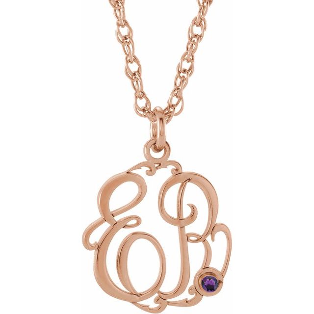 14K Rose Imitation Amethyst 2-Initial Script Monogram Necklace