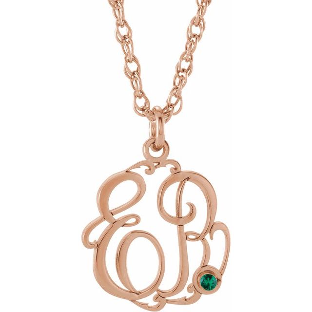14K Rose Imitation Emerald 2-Initial Script Monogram Necklace