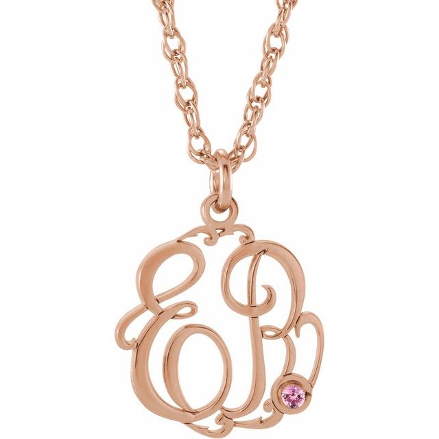 14K Rose Imitation Pink Tourmaline 2-Initial Script Monogram Necklace