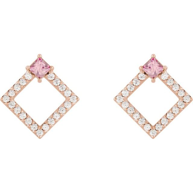 / Earring / Set / Natural Pink Tourmaline / Square / 3 X 3 Mm / 14K Rose / Natural Diamond / Pair / Friction Backs Included / Polished / Natural Pink Tourmaline And 1/3 Ctw Natural Diamond Earrings