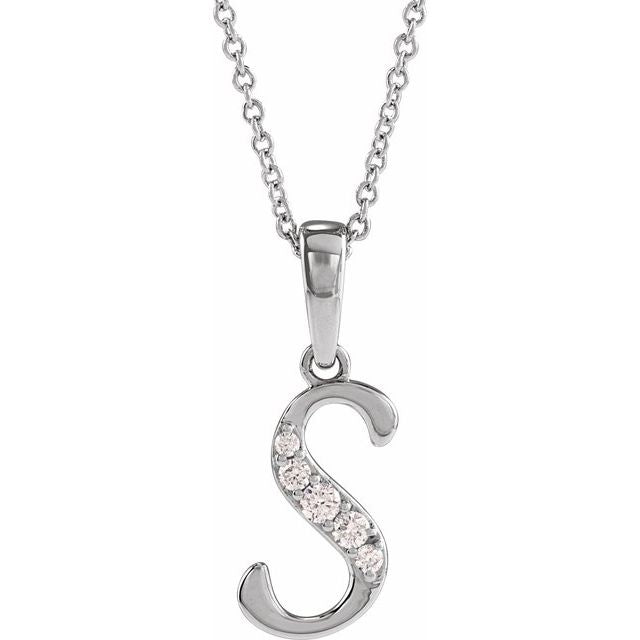 14K White .08 CTW Natural Diamond Initial S 18" Necklace