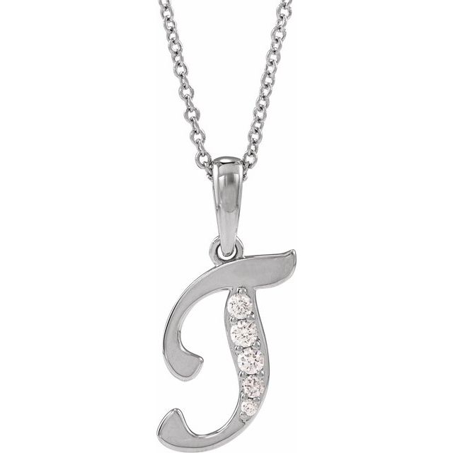 14K White 1/10 CTW Natural Diamond Initial T 18" Necklace