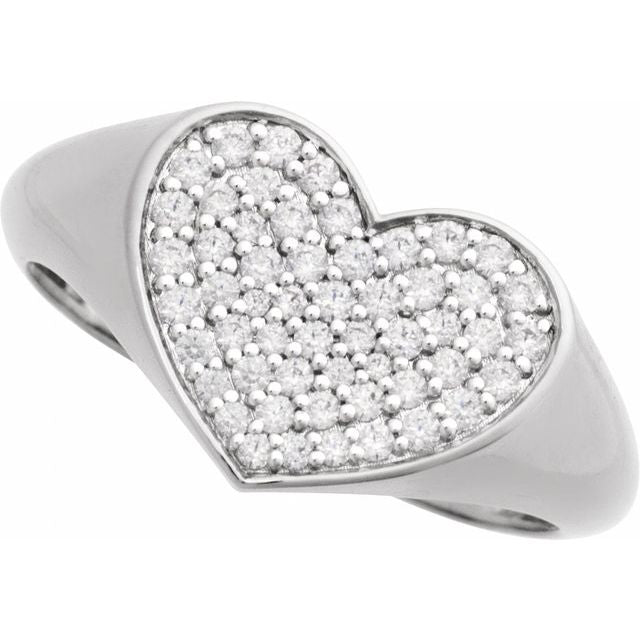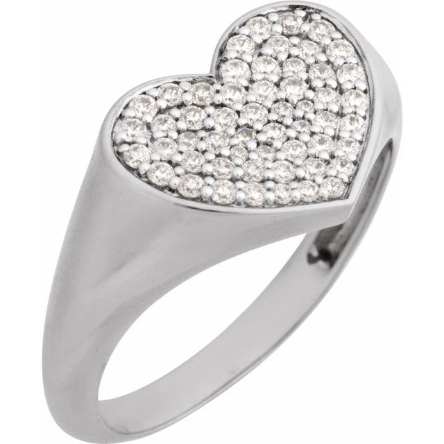 14K White 1/3 CTW Natural Diamond Heart Signet Ring