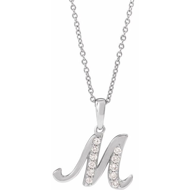14K White 1/5 CTW Natural Diamond Initial M 18" Necklace