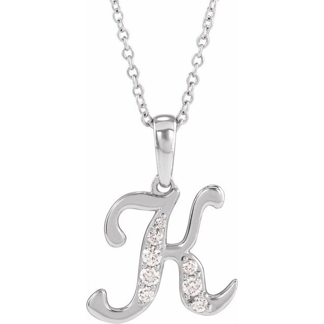 / Necklace / Set / 14K White / Initial K / Natural Diamond / Round / I1, G-H Ctw / 18 In / Polished / 1/6 Ctw Natural Diamond Initial Necklace