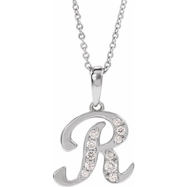 / Necklace / Set / 14K White / Initial R / Natural Diamond / Round / I1, G-H :: 1/6 Ctw / 18 In / Polished / 1/6 Ctw Natural Diamond Initial Necklace