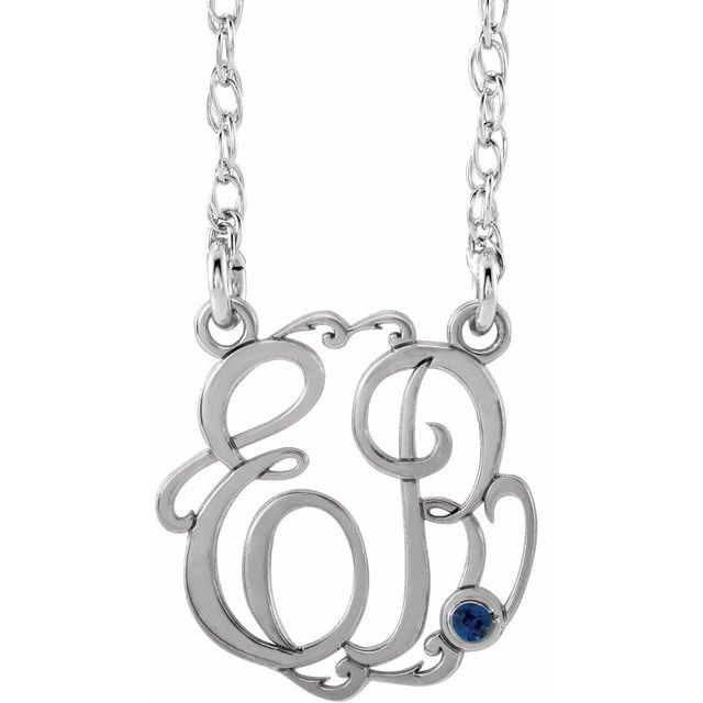 / Necklace / Set / 14K White / Imitation Blue Sapphire / Round / 1.5 Mm / 2 Initials / 15 Mm / Polished / Imitation Blue Sapphire 2-Initial Script Monogram Necklace