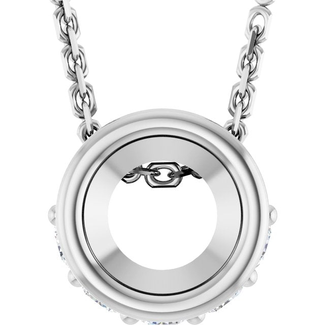 / Necklace / Semi-Set / 14K White / Round / 4Mm :: 0.07 Ctw / Natural Diamond / I1, G-H / 18 In / Polished / .07 Ctw Natural Diamond Semi-Set Hidden Halo Necklace