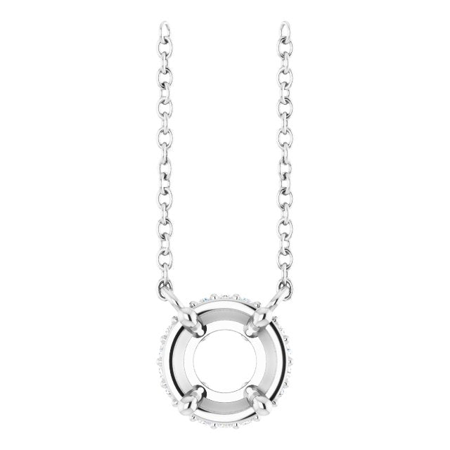 / Necklace / Semi-Set / 14K White / Round / 5.5Mm :: 0.06 Ctw / Natural Diamond / I1, G-H / 18 In / Polished / .06 Ctw Natural Diamond Semi-Set Hidden Halo Necklace