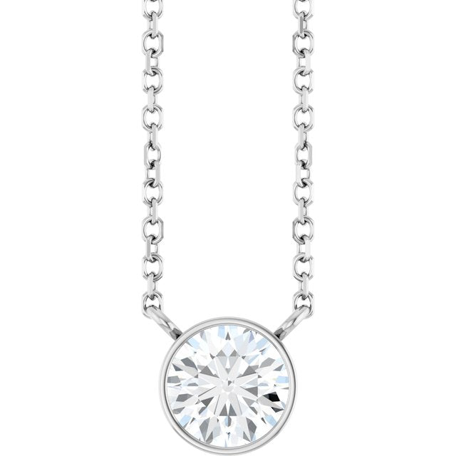 / Necklace / Set / 14K White / Round / Lab-Grown Diamond / 5.5Mm :: 5/8 Ct / Si1-Si2, G-H / 16-18 In / Polished / 5/8 Ct Lab-Grown Diamond Solitaire Necklace