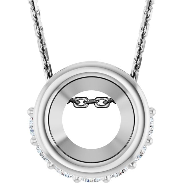 / Necklace / Semi-Set / 14K White / Round / 5Mm :: 1/10 Ctw / Natural Diamond / I1, G-H / 18 In / Polished / 1/10 Ctw Natural Diamond Semi-Set Hidden Halo Necklace