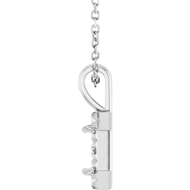 14K White 5x3 mm Emerald 1/8 CTW Natural Diamond Semi-Set 16-18" Necklace