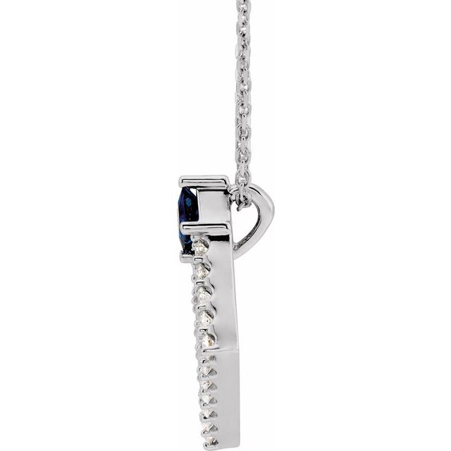 14K White Natural Blue Sapphire & 3/8 CTW Natural Diamond 16-18" Necklace