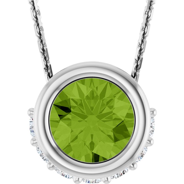 / Necklace / Set / 14K White / Round / Natural Peridot / 5Mm :: 1/10 Ctw / Natural Diamond / I1, G-H / 18 In / Polished / Natural Peridot And 1/10 Ctw Natural Diamond Hidden Halo Necklace