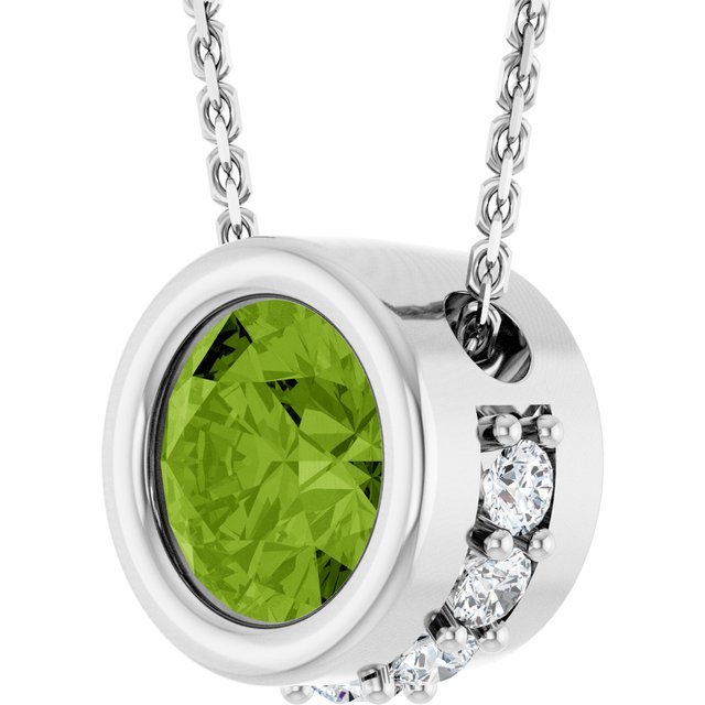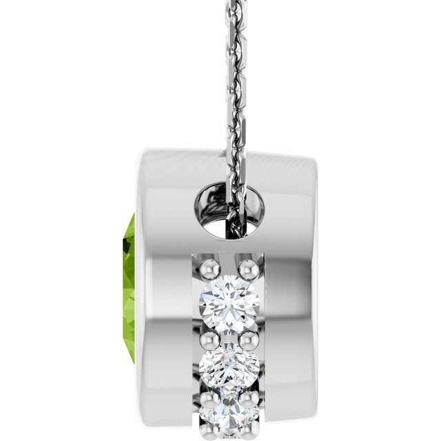 14K White Natural Peridot & 1/10 CTW Natural Diamond 18" Necklace
