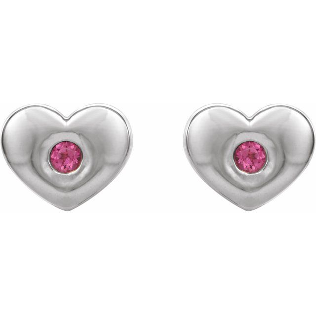 / 14K White / Set / Round / Natural Pink Tourmaline / Pair / 2 Mm / Friction / Friction Backs Included / Bezel / Polished / Natural Pink Tourmaline Heart Earrings With Backs