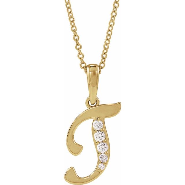 14K Yellow 1/10 CTW Natural Diamond Initial T 18" Necklace