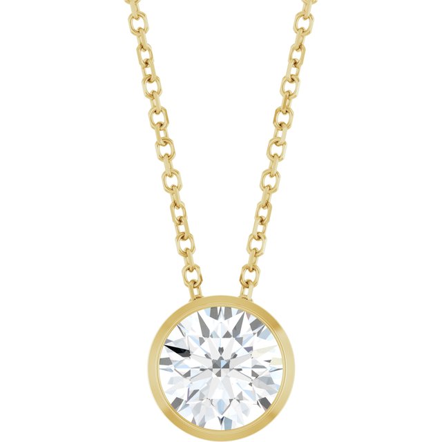 14K Yellow 1 CT Lab-Grown Diamond Bezel-Set 16-18" Necklace