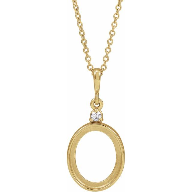 / Necklace / Semi-Set / 14K Yellow / Oval / 10 X 8Mm :: 0.03 Ct / Natural Diamond / I1, G-H / 16-18 In / Polished / .03 Ct Natural Diamond Semi-Set Cabochon Bezel-Set Necklace