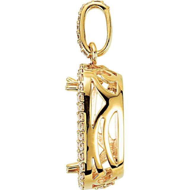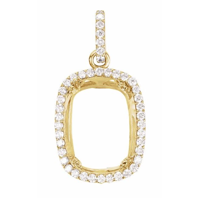 14K Yellow 14x10 mm Cushion 1/2 CTW Natural Diamond Semi-Set Pendant