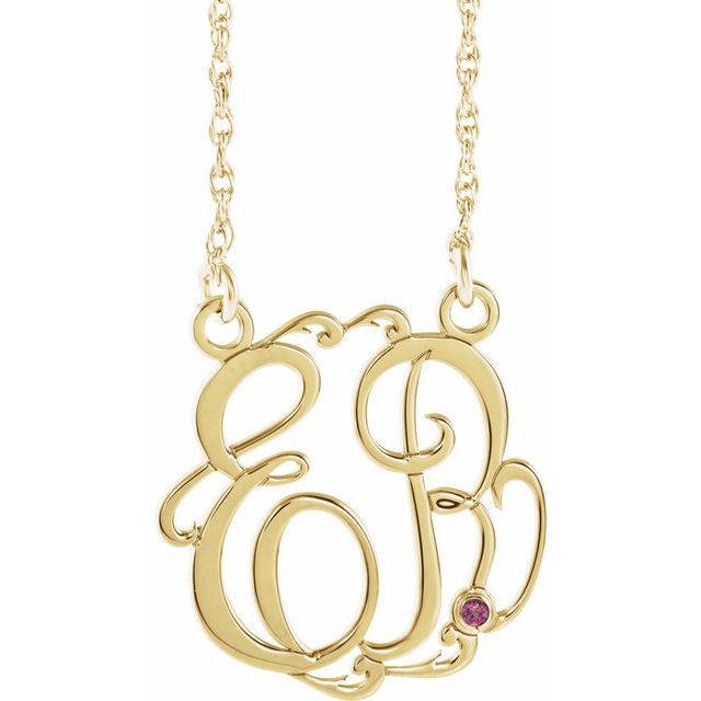 / Necklace / Set / 14K Yellow / Imitation Pink Tourmaline / Round / 1.5 Mm / 2 Initials / 20 Mm / Polished / Imitation Pink Tourmaline 2-Initial Script Monogram Necklace
