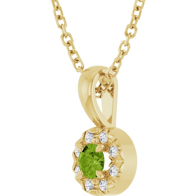 / Necklace / Set / 14K Yellow / Round / Natural Peridot / 3Mm :: 0.03 Ctw / Natural Diamond / I1, G-H / 16-18 In / Polished / Natural Peridot And .03 Ctw Natural Diamond French-Set Halo-Style Necklace