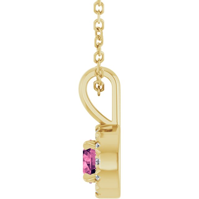 14K Yellow 4 mm Natural Pink Tourmaline & .05 CTW Natural Diamond 16-18" Necklace