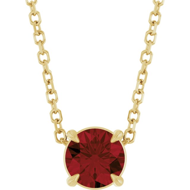 / Necklace / Set / 14K Yellow / Round / Natural Mozambique Garnet / 5 Mm / 16-18 In / Polished / Natural Mozambique Garnet Solitaire Slide Necklace