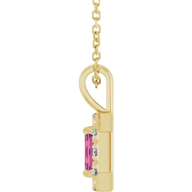 14K Yellow 5x3 mm Natural Pink Tourmaline & 1/8 CTW Natural Diamond 16-18" Necklace