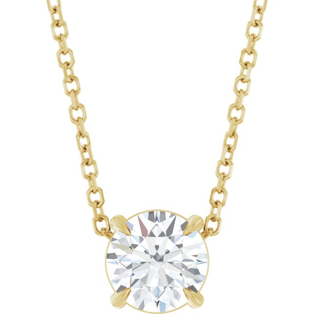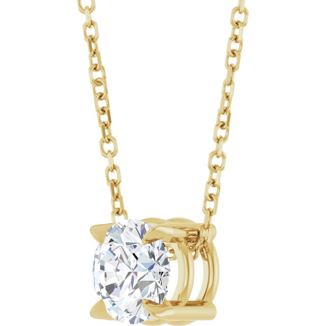 / Necklace / Set / 14K Yellow / Round / Natural White Sapphire / 6 Mm / 16-18 In / Polished / Natural White Sapphire Solitaire Slide Necklace