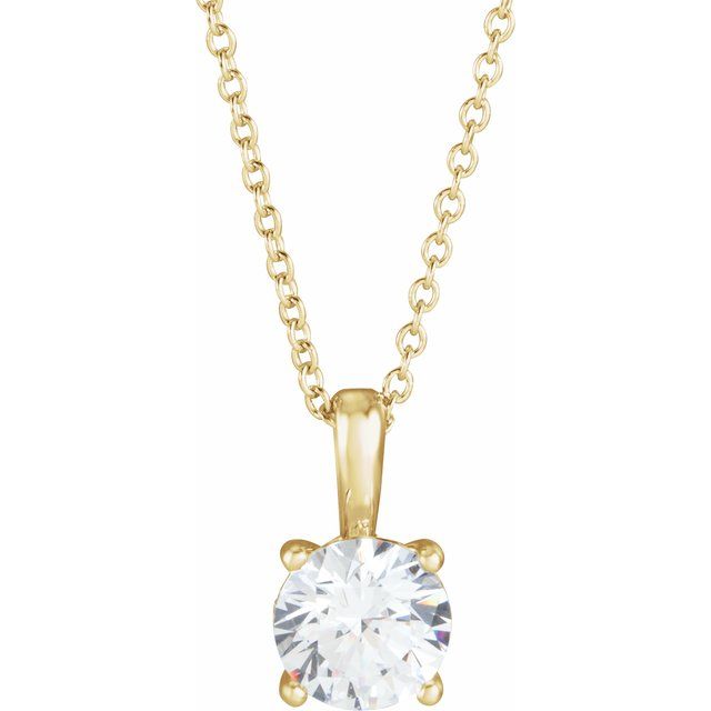 / Necklace / Set / 14K Yellow / Round / Natural White Sapphire / 6 Mm / 16-18 In / Polished / Natural White Sapphire Necklace