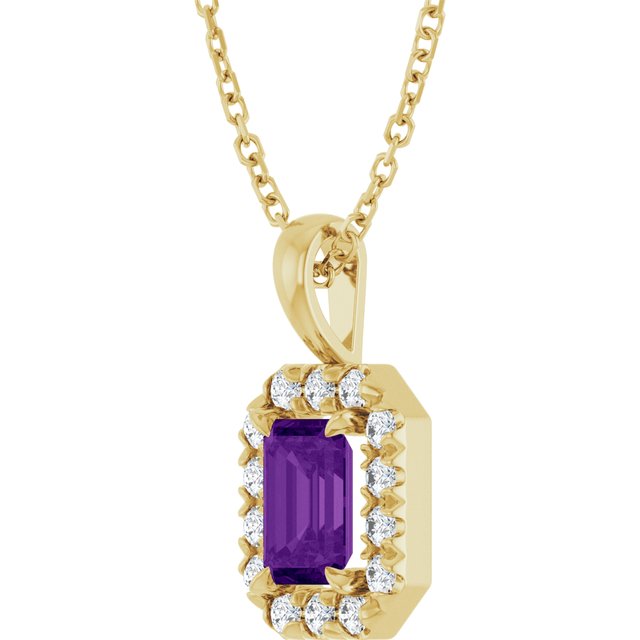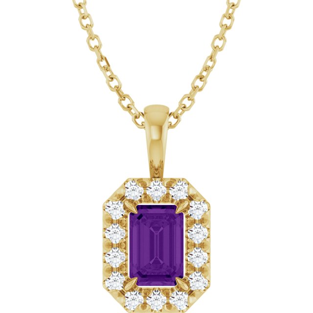 / Necklace / Set / 14K Yellow / Emerald / Natural Amethyst / 6 X 4Mm :: 1/5 Ctw / Natural Diamond / I1, G-H / 16-18 In / Polished / Natural Amethyst And 1/5 Ctw Natural Diamond French-Set Halo-Style Necklace