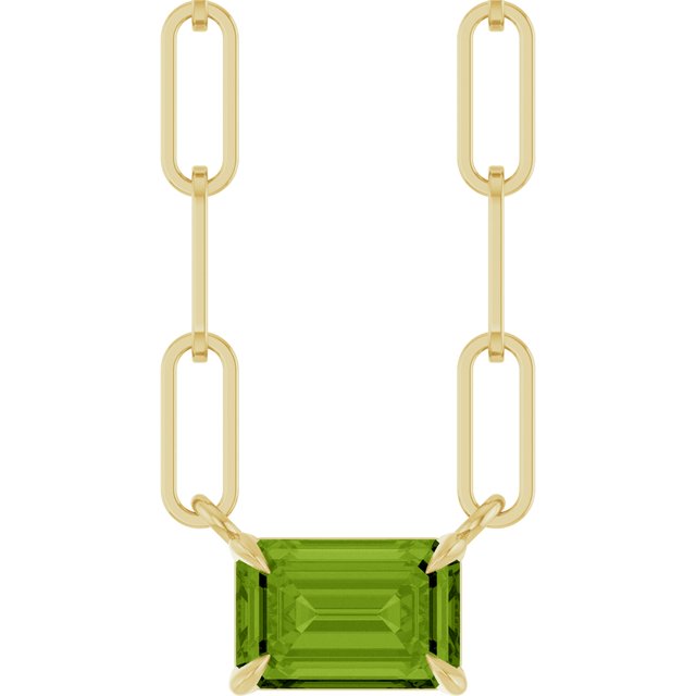 / Necklace / Set / 14K Yellow / Emerald / Natural Peridot / 6 X 4 Mm / 18 In / Polished / Natural Peridot Solitaire Claw Prong Necklace