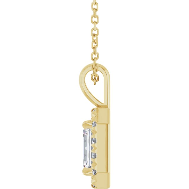 14K Yellow 6x4 mm Natural White Sapphire & 1/5 CTW Natural Diamond 16-18" Necklace
