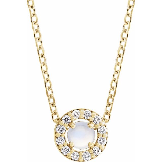 14K Yellow Cabochon Natural Rainbow Moonstone & .06 CTW Natural Diamond Halo-Style 16-18" Necklace