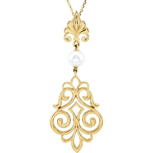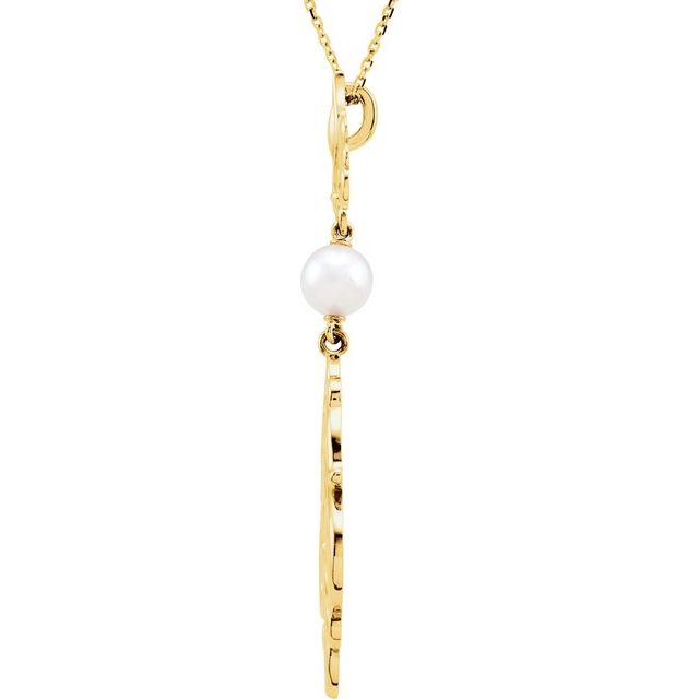 14K Yellow Cultured White Akoya Pearl 18" Necklace