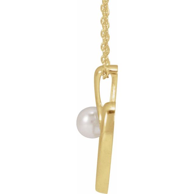 14K Yellow Cultured White Akoya Pearl Heart 16-18" Necklace